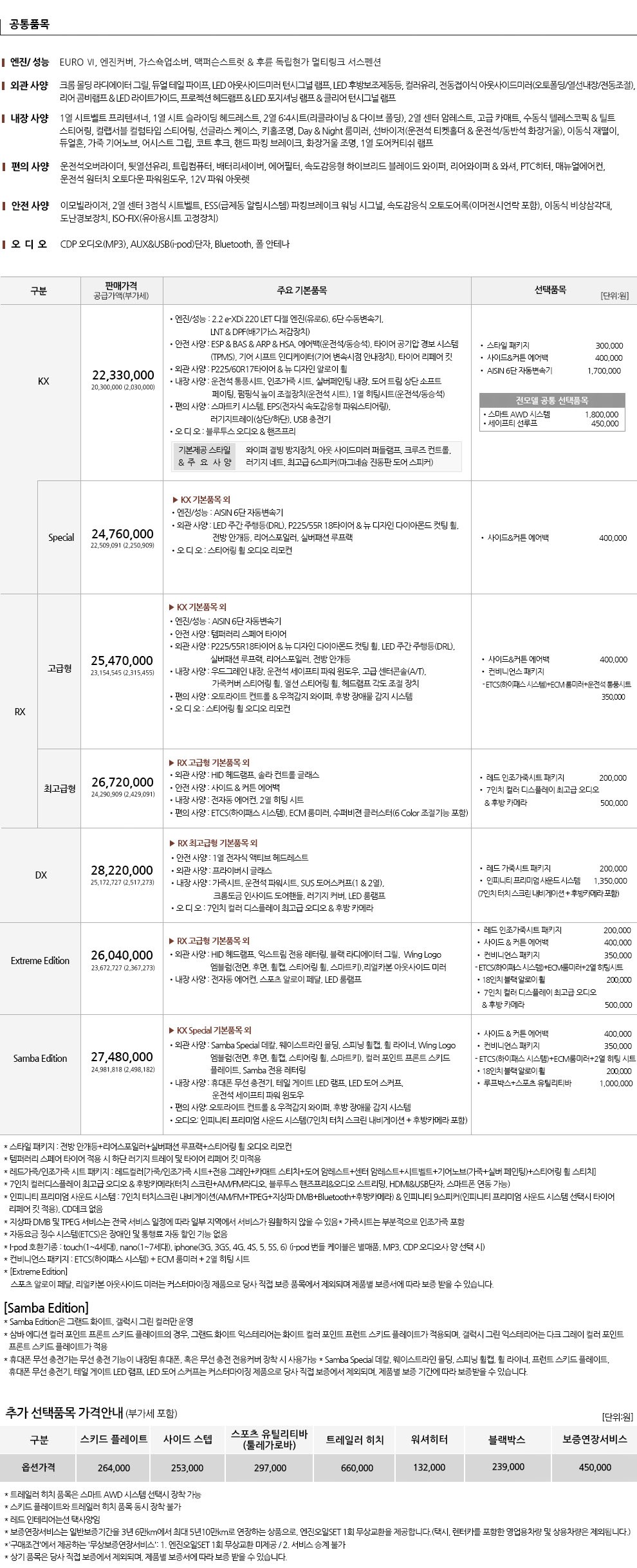 ※ 본 가격표의 모든 저작권은 해당 차량 제조사에 있습니다.