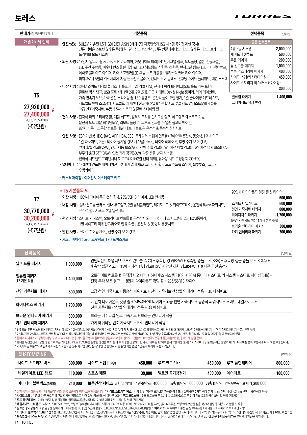 2022년 6월 토레스 신차가격표 (토레스 출시)