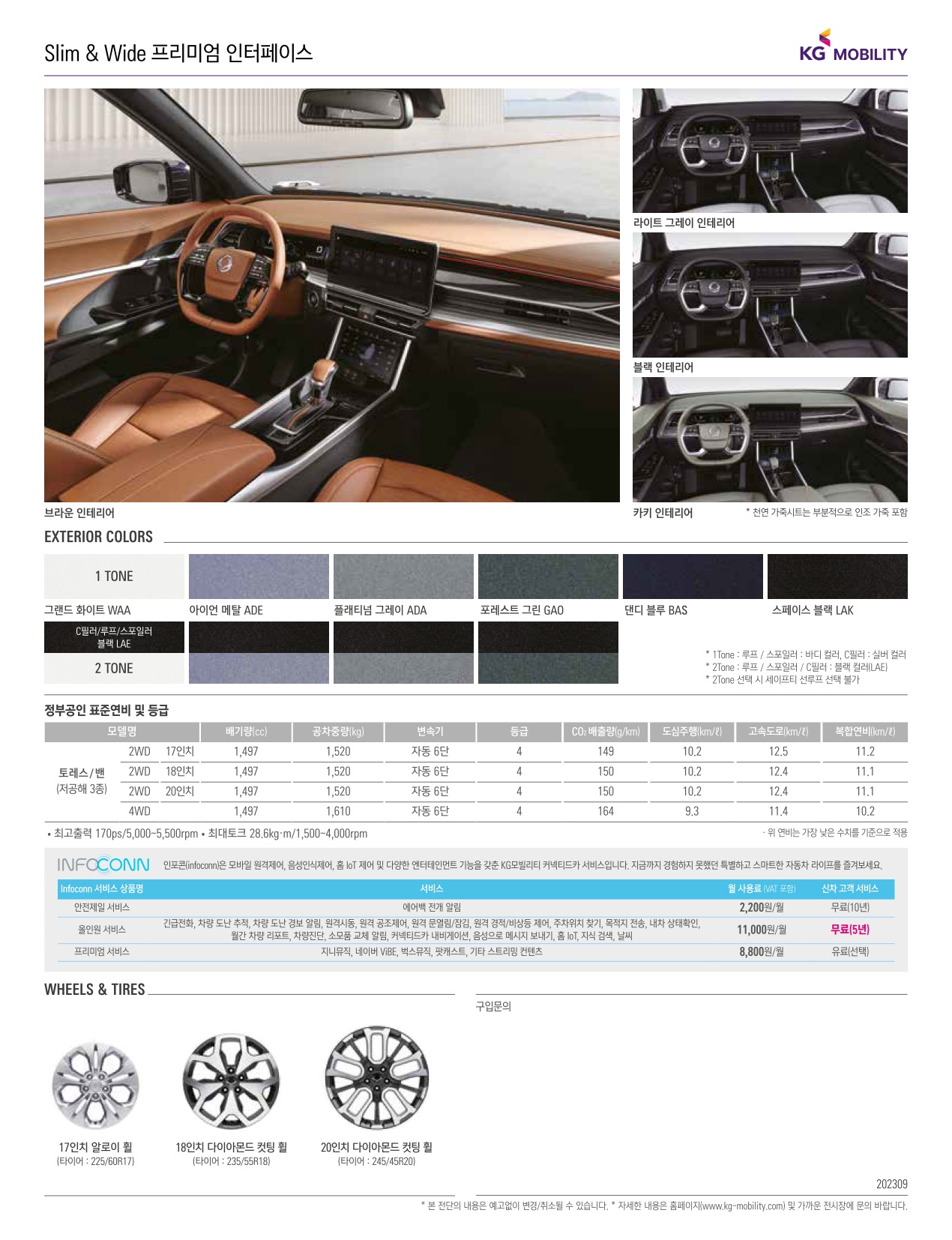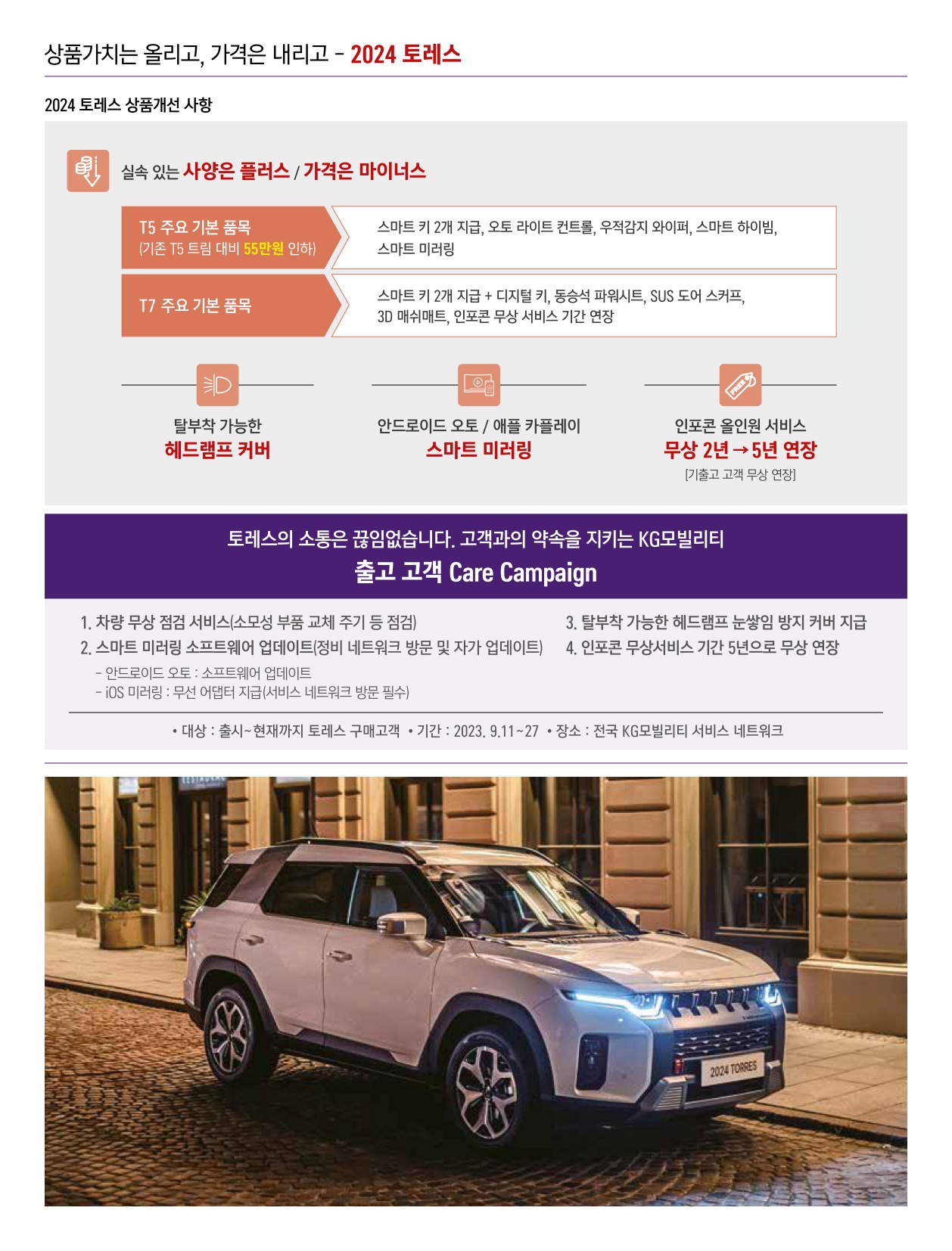 2023년 9월 토레스 신차가격표 (2024년형 토레스 출시)