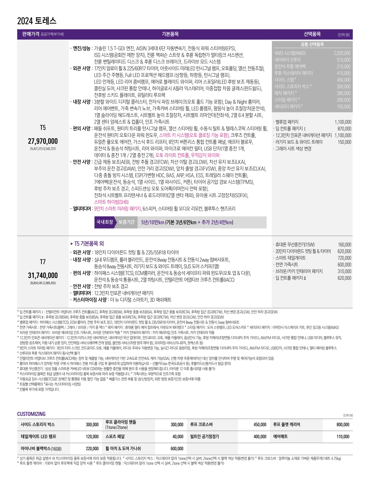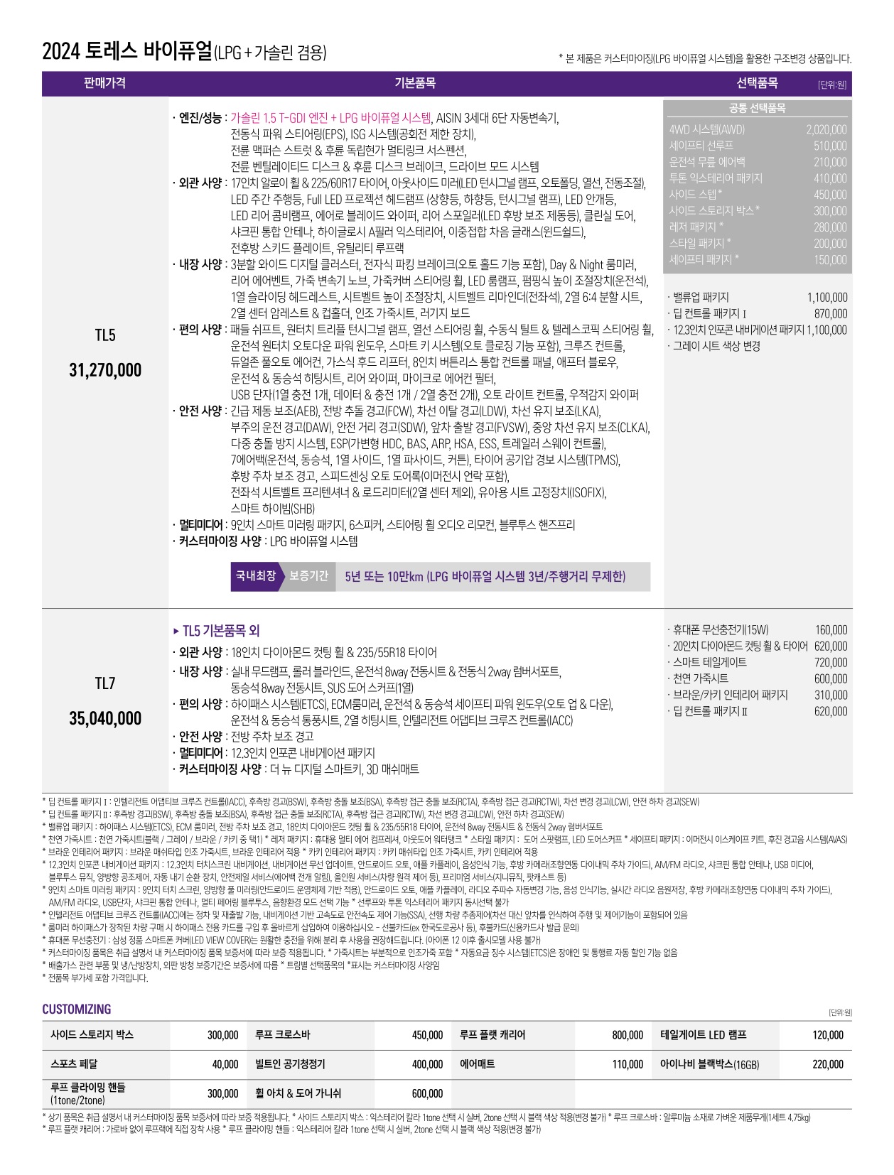 ※ 본 가격표의 모든 저작권은 해당 차량 제조사에 있습니다.