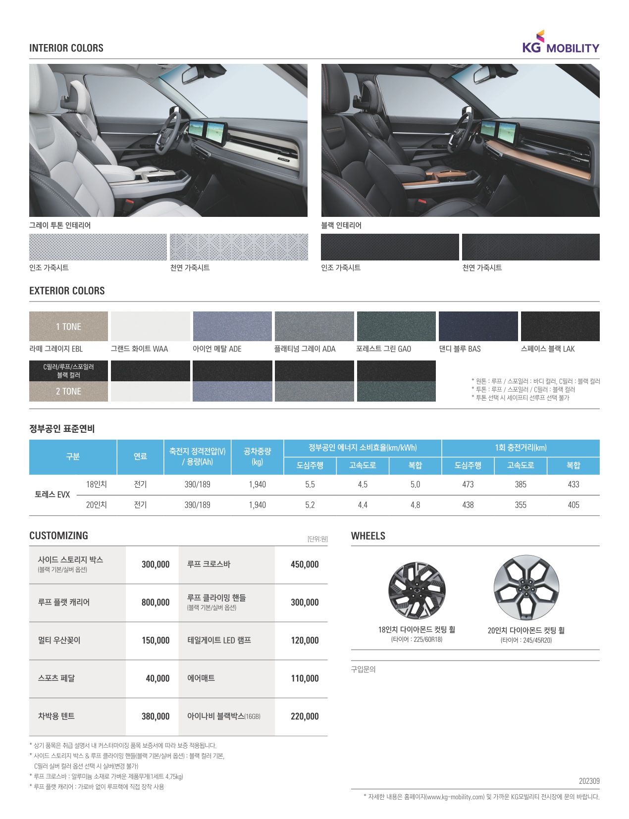 2023년 9월 토레스EVX 신차가격표 (토레스 EVX 전기차 출시)