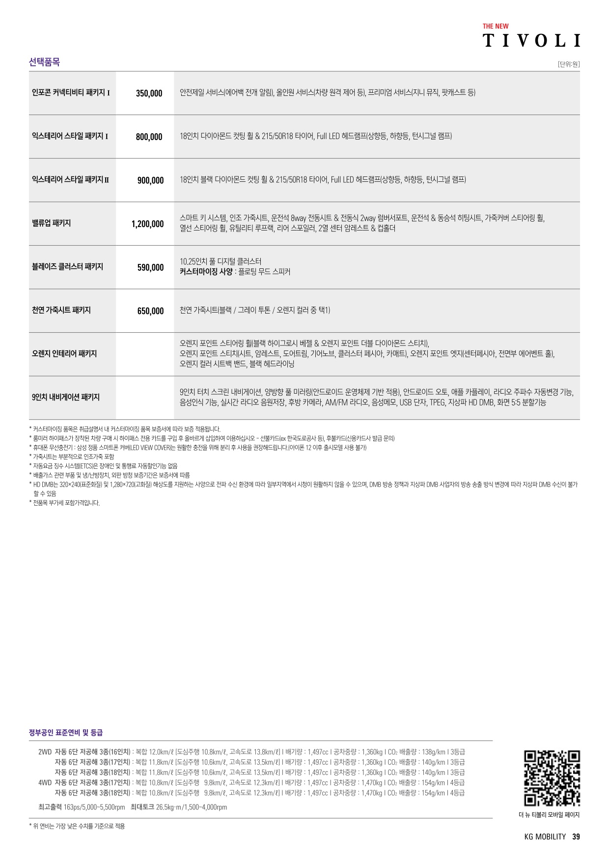 2021년 10월 티볼리 신차가격표 (2022년형 티볼리 업비트 트림 출시)