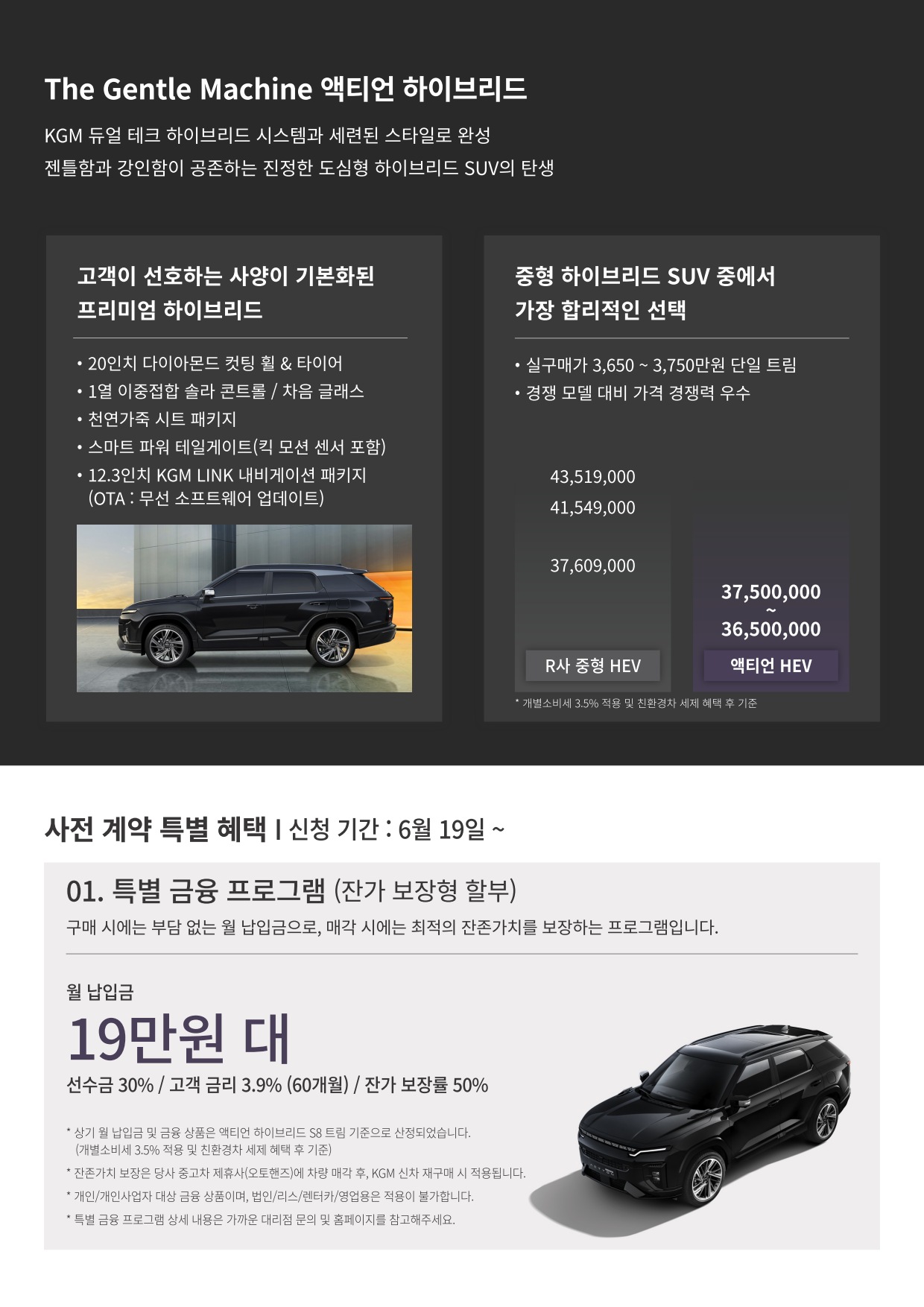 2025년 6월 액티언 하이브리드 신차가격표 (사전계약용)